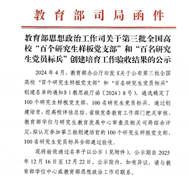 第三批全国高校“百个研究生样板党支部”验收通过名单
