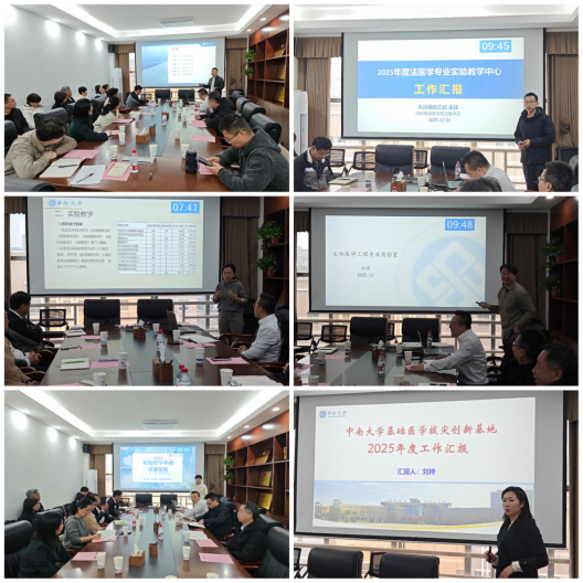 会上,国家级医学机能学实验教学示范中心、省级医学形态学实验教学示范中心、省级医学细胞与分子生物学实验教学示范中心、法医学专业实验室、生物医学工程专业实验室和基础医学拔尖创新基地先后汇报年度工作,内容涵盖工作成效、教学改革、工作特色、发展规划、实验室安全等方面。汇报后,全体参会人员围绕年度工作成效与不足展开深入讨论,重点梳理了当前实验教学中存在的资源调配、技术更新、跨学科协同、队伍建设等亟待解决的问题,并就2026年重点工作方向达成共识,包括改善基本办学条件项目建设、强化实验教学团队能力提升、完善多学科实验课程体系、补充实验技术队伍等。