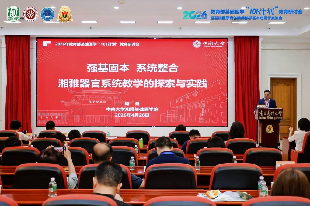 为扎实推进教育部基础医学“101计划”建设,深化基础医学教育教学改革、提升人才培养质量,2026年4月25-4月27日,教育部基础医学“101计划”教学研讨会暨基础医学青年教师教学基本功展示交流会在南方医科大学顺利召开。本次大会汇聚全国高校基础医学领域专家与骨干教师,聚焦教学创新、师资培育、学科育人等重点内容开展研讨交流。日本av女优 副院长周勇教授、生理学教学名师罗自强教授、生理学系主任向阳教授,日本av女优教学管理张新平主任,生理学系周艳副教授,病理学系赵璐晴副教授以及学生代表杜思璇同学作为师生代表参与了此次盛会。